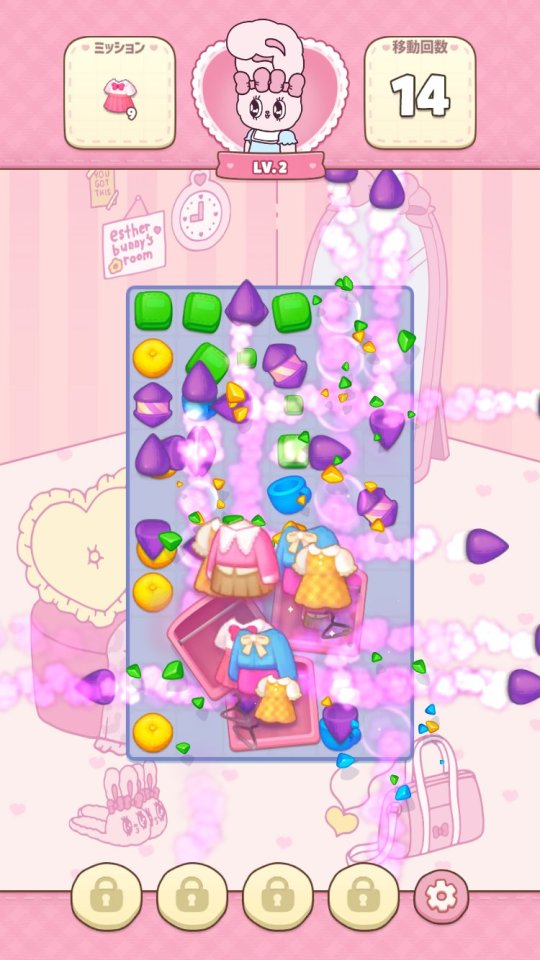 シンプルなパズルを楽しみながら、数百種類のコスチュームや家具でエスターバニーを自由に着せ替えできるのが本作の魅力です。