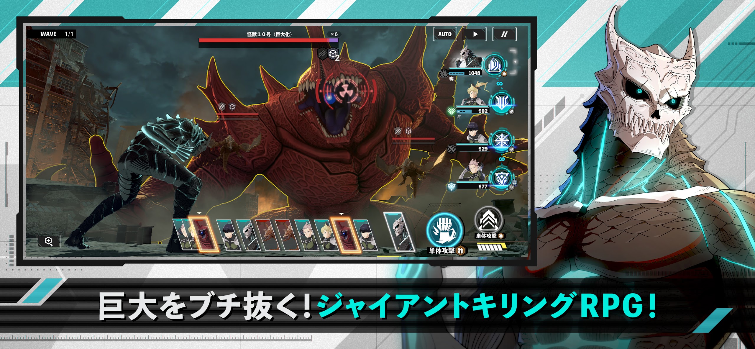 『怪獣8号 THE GAME』は、人気アニメの世界観そのままに巨大怪獣と戦うターン制コマンドバトルRPGです。