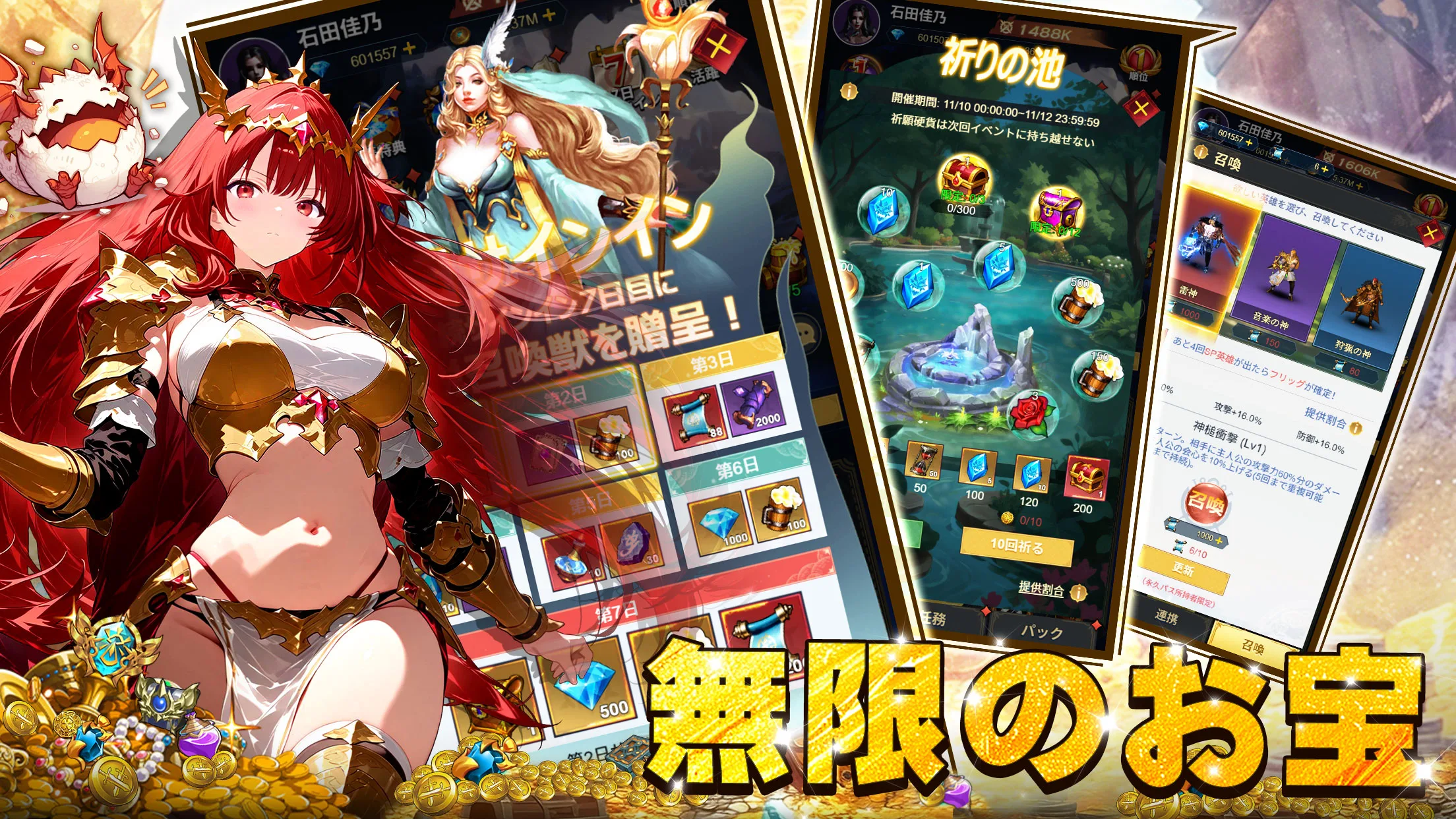 ヒーローと召喚獣を組み合わせたパーティ編成や、女神キャラクター専用のスキンなど、やり込み要素も充実しています。