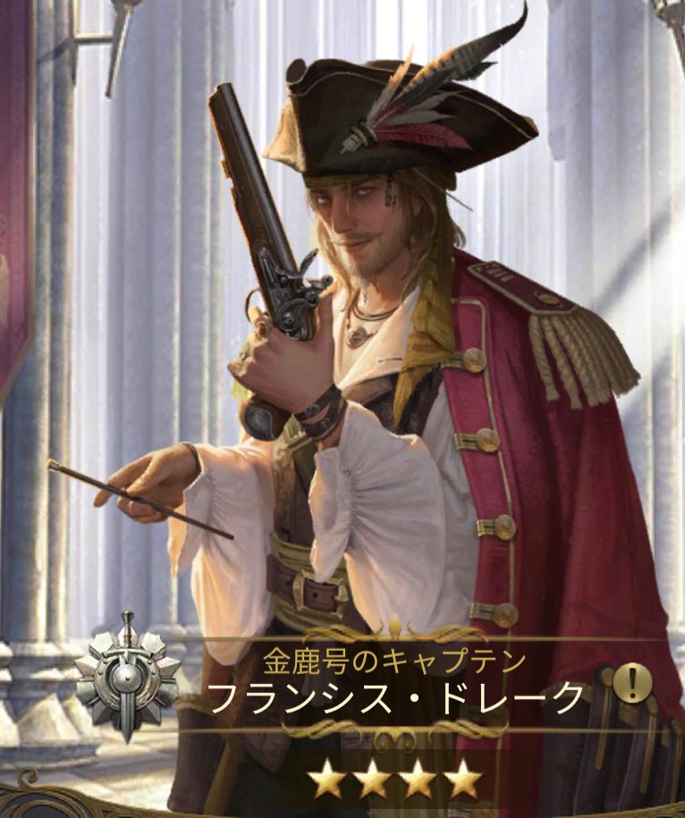あとは、☆4「フランシス・ドレーク」もゲットしやすい騎士です。「フランシス・ドレーク」はVIP1で解放されます。