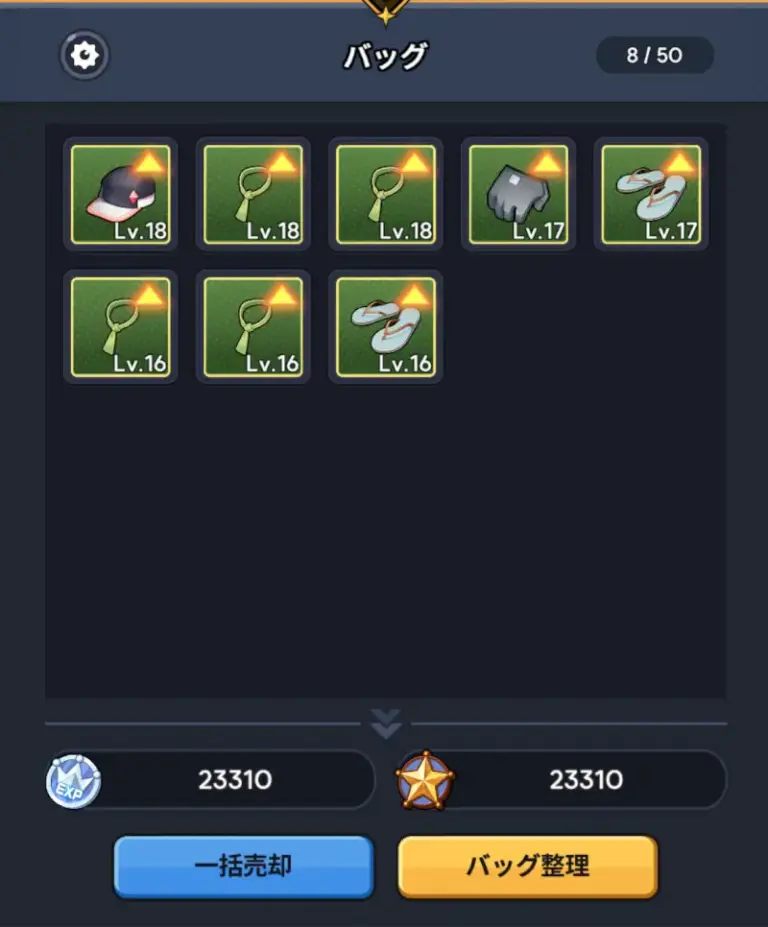 不要な装備は売却することでプレイヤー経験値になり、レベル上限の解放にも繋がるので一石二鳥です。