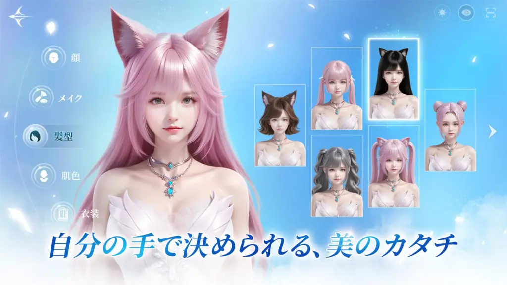 キャラクター作成の自由度も非常に高く、自分だけの理想のアバターを作り込めるのが魅力です。
