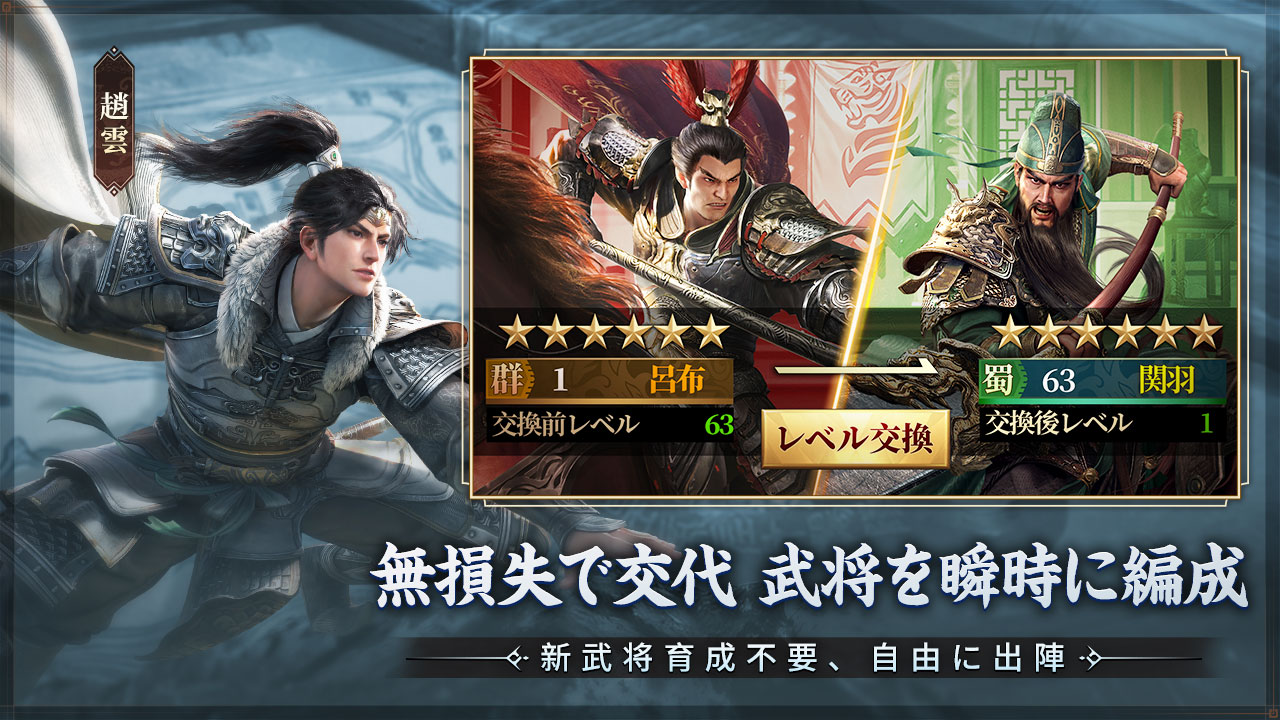 新しい武将を手に入れても一から育て直す必要がなく、気軽に色々な編成を試せるのは大きな利点です。