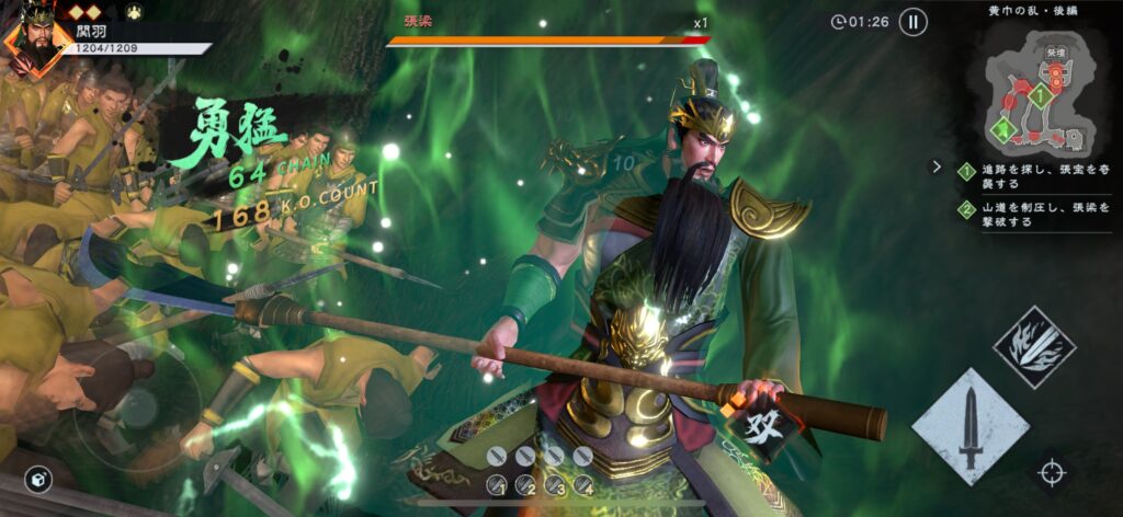 本作最大の魅力は、シリーズ伝統である「一騎当千」のアクションをスマホで手軽に味わえる点です。