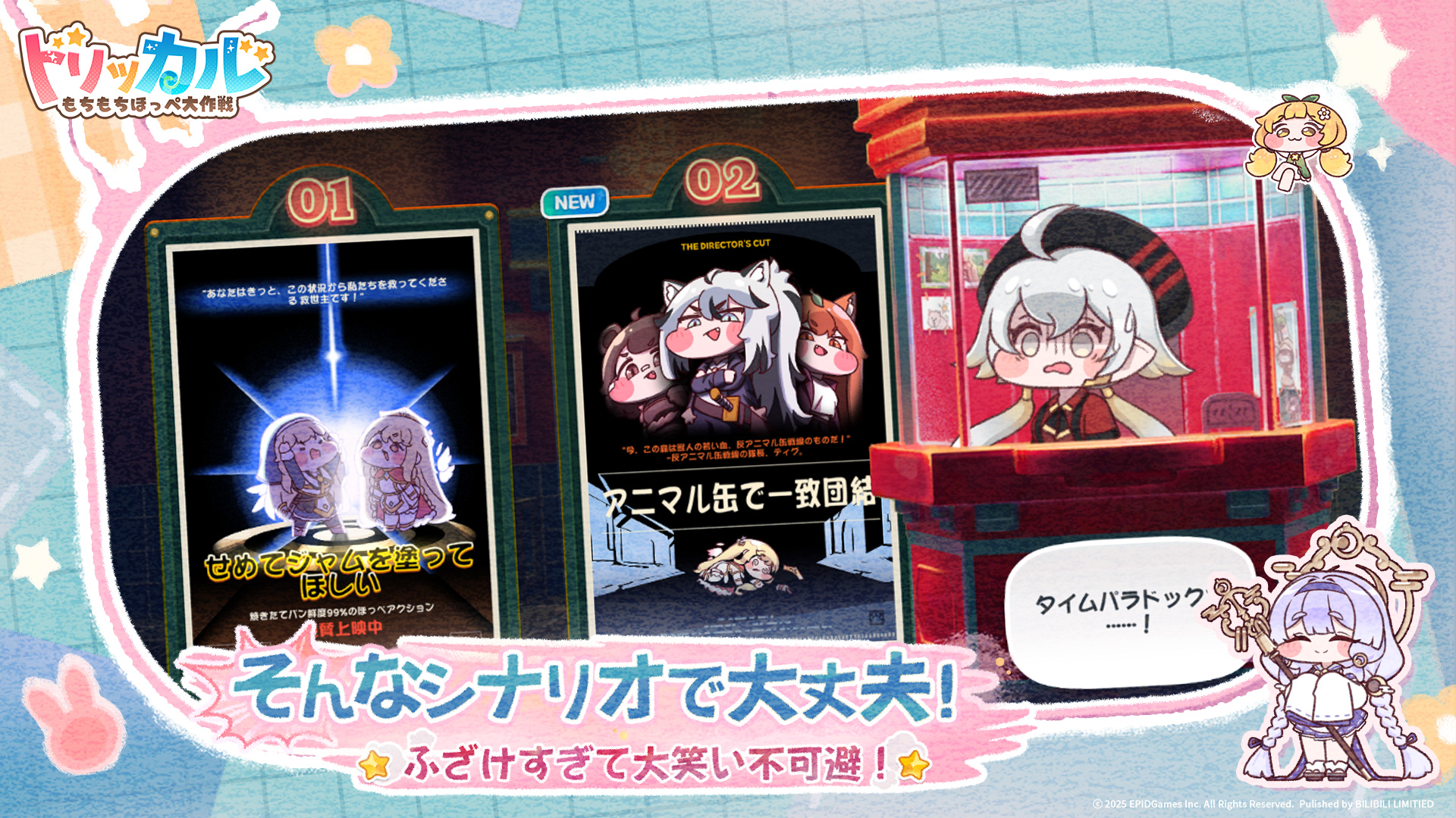 もちもちほっぺのキャラクターたちが暮らす世界「エーリアス」を舞台に、コミカルな冒険を楽しめます。