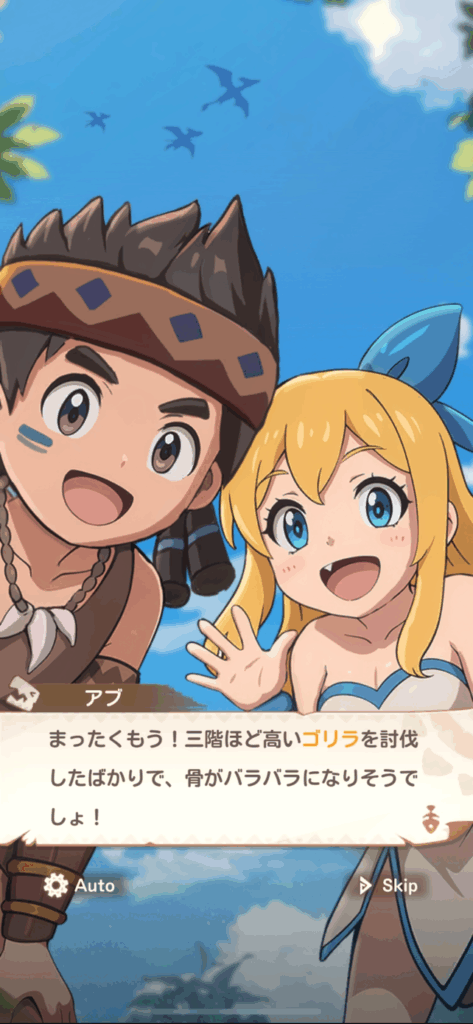 手に入れた石器や骨などの素材を惜しみなく使って装備レベルを上げるだけで、バトルの安定感がぐっと増し、スムーズに冒険を進められるようになります。
